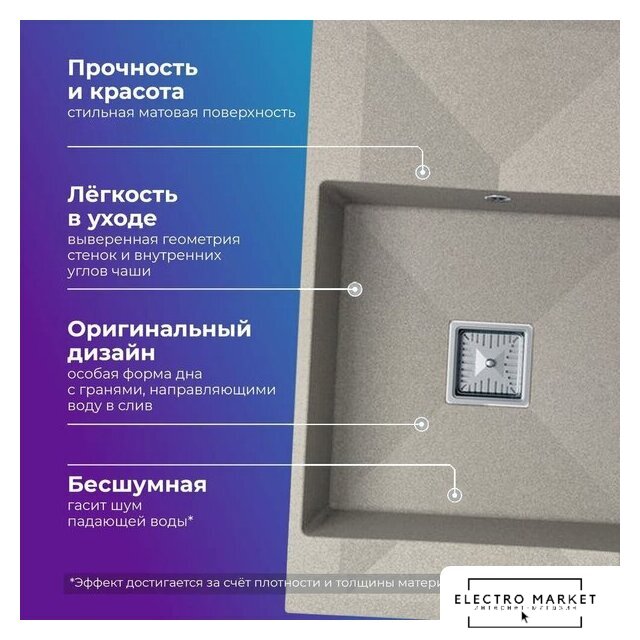 врезная на столешницу, искусственный камень, размеры: 42x55 см, глубина чаши: 20 см, в шкаф шириной от 60 см