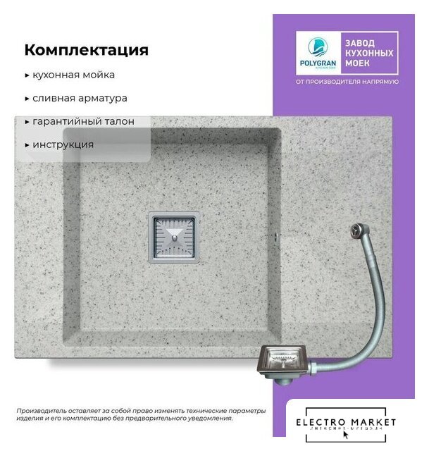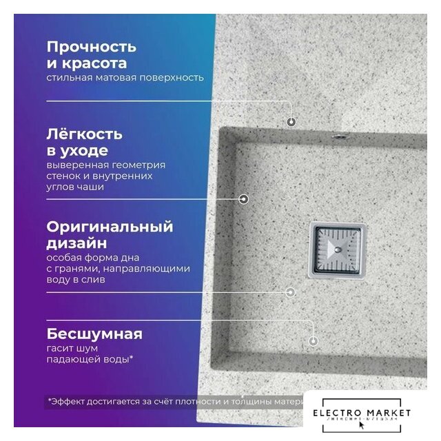 врезная на столешницу, искусственный камень, размеры: 42x55 см, глубина чаши: 20 см, в шкаф шириной от 60 см