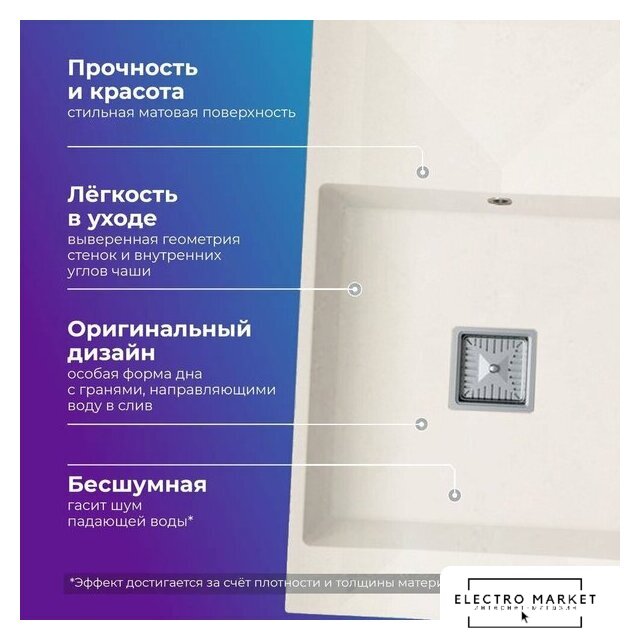 врезная на столешницу, искусственный камень, размеры: 42x55 см, глубина чаши: 20 см, в шкаф шириной от 60 см