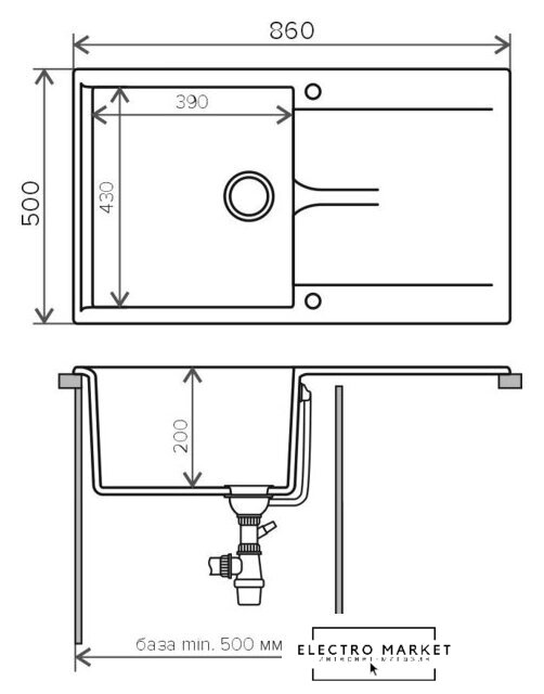 врезная на столешницу, искусственный камень, размеры: 86x50 см, в шкаф 50 см
