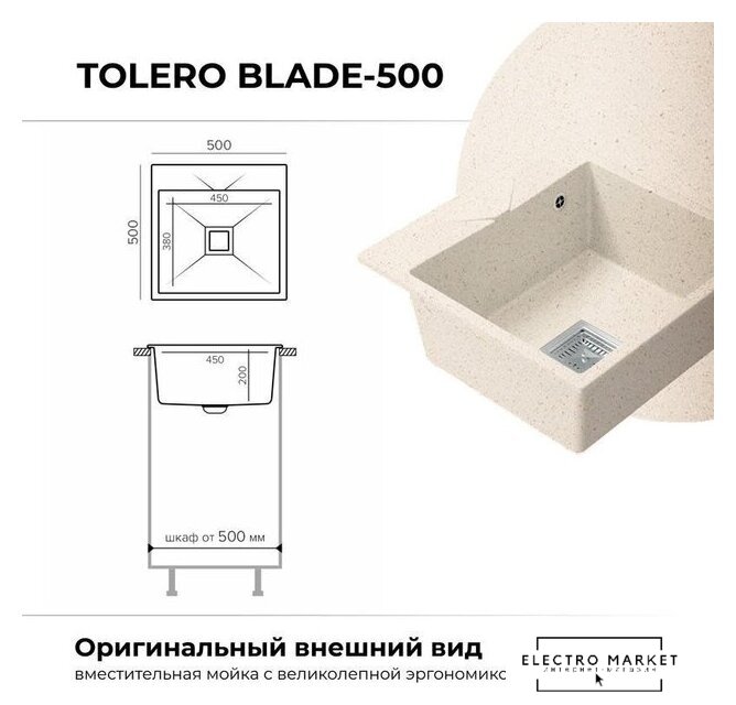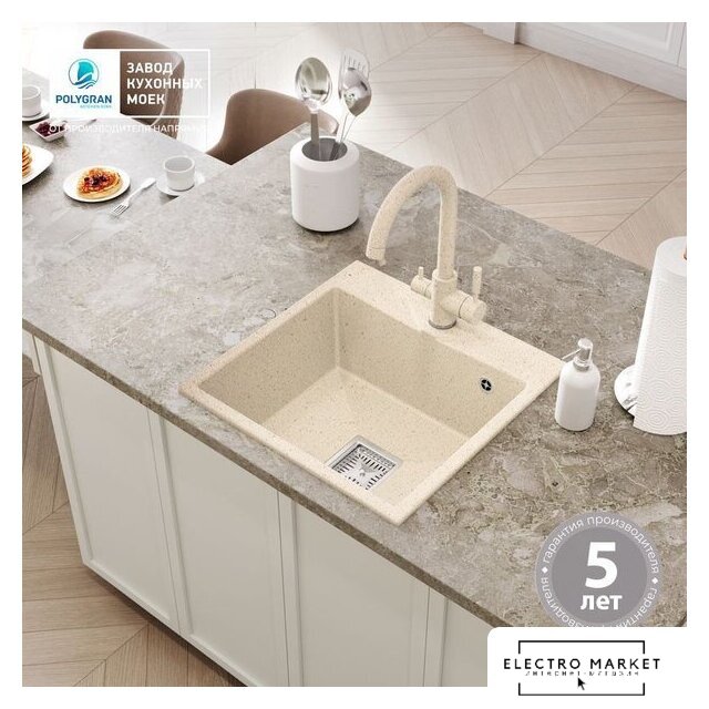 врезная на столешницу, искусственный камень, размеры: 50x50 см, глубина чаши: 20 см, в шкаф шириной от 50 см