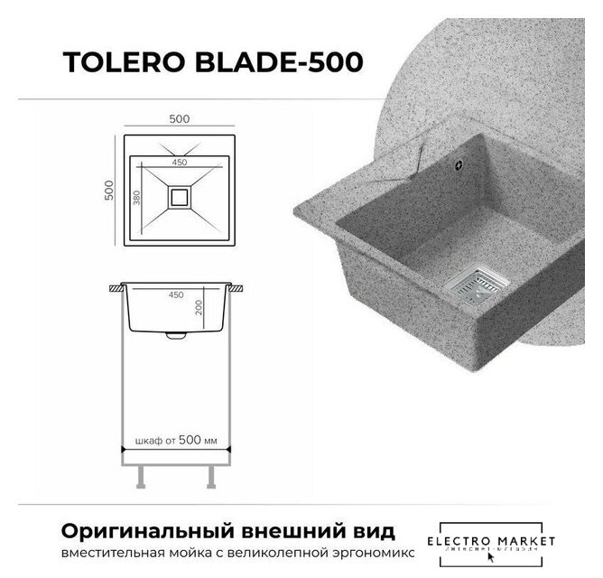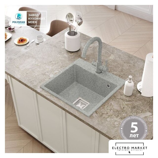 врезная на столешницу, искусственный камень, размеры: 50x50 см, глубина чаши: 20 см, в шкаф шириной от 50 см