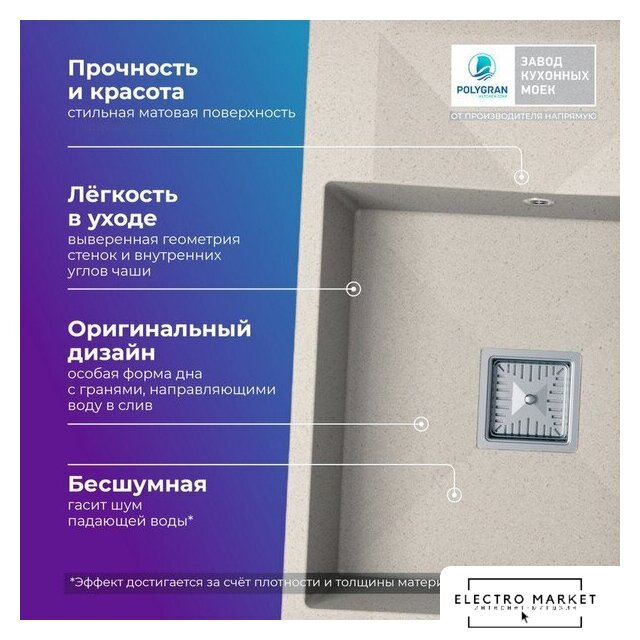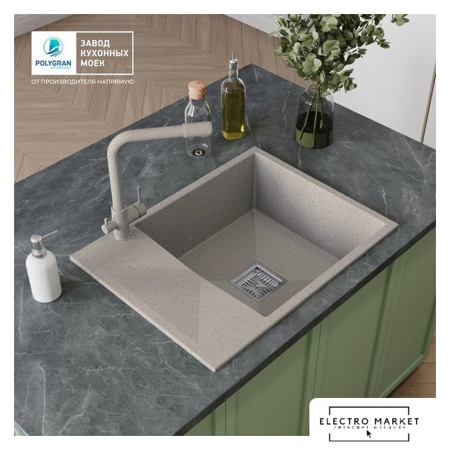 врезная на столешницу, искусственный камень, размеры: 50x66 см, глубина чаши: 20 см, в шкаф шириной от 60 см