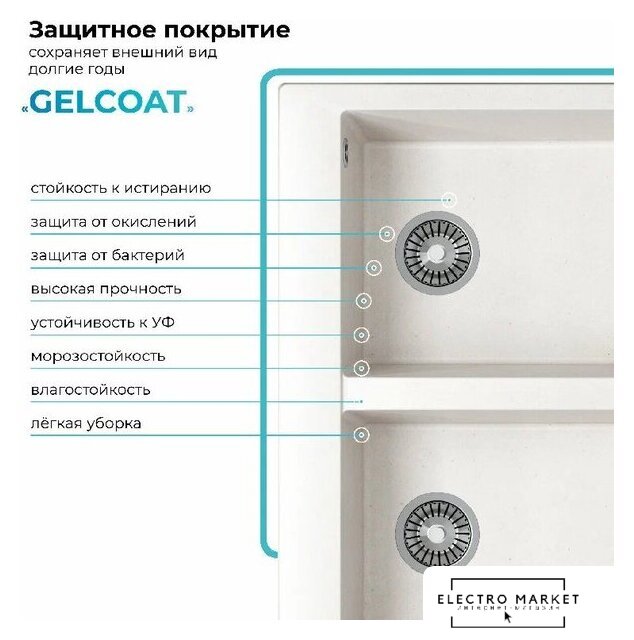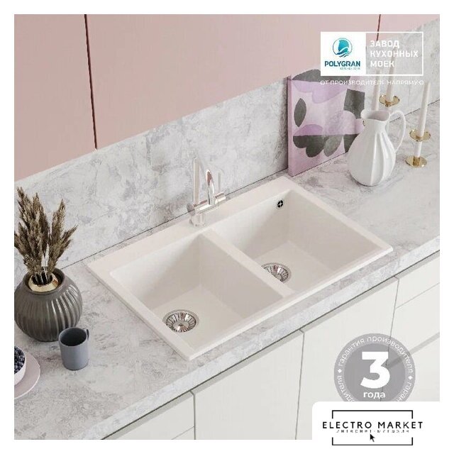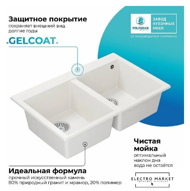 врезная на столешницу, искусственный камень, размеры: 73.2x47.5 см, глубина чаши: 18 см, в шкаф шириной от 70 см