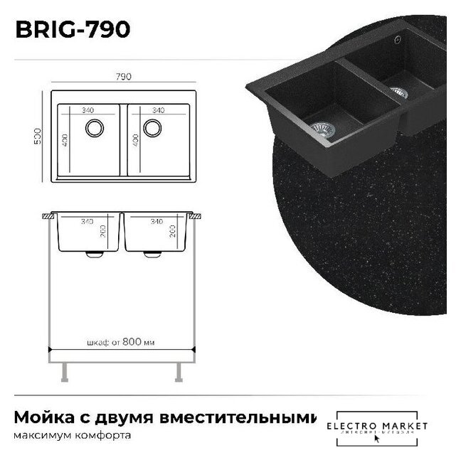 врезная на столешницу, искусственный камень, размеры: 50x79 см, в шкаф 80 см