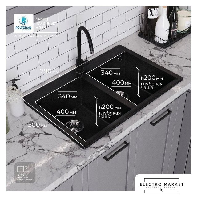 врезная на столешницу, искусственный камень, размеры: 50x79 см, глубина чаши: 20 см, в шкаф шириной от 80 см
