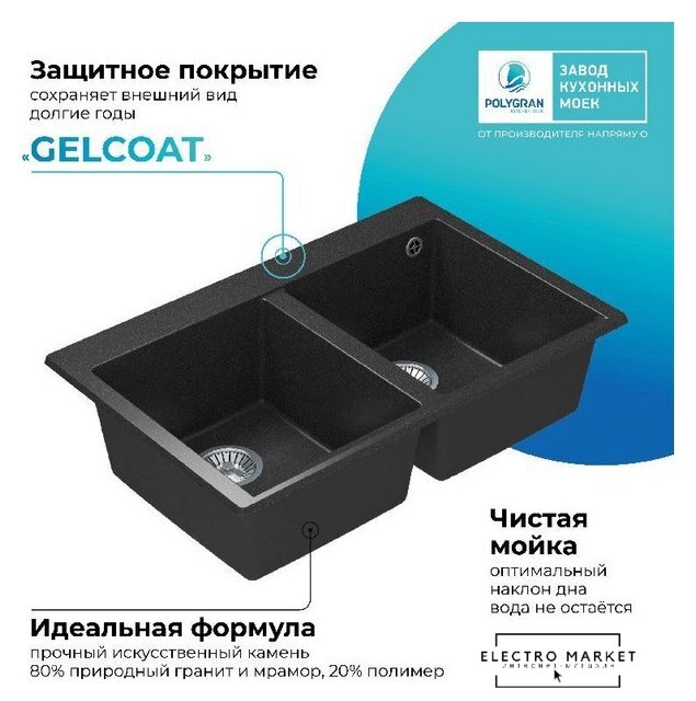 врезная на столешницу, искусственный камень, размеры: 73.2x47.5 см, глубина чаши: 18 см, в шкаф шириной от 70 см