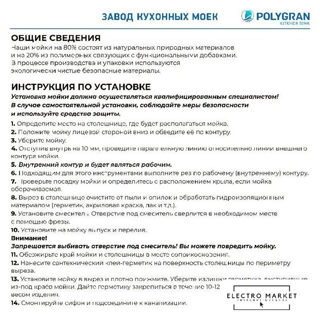 | Комплектация | сифон, инструкция, гарантийный талон, сливная арматура |