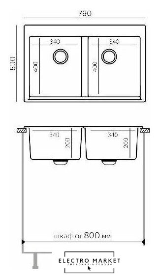 | Длина мойки | 79 см |