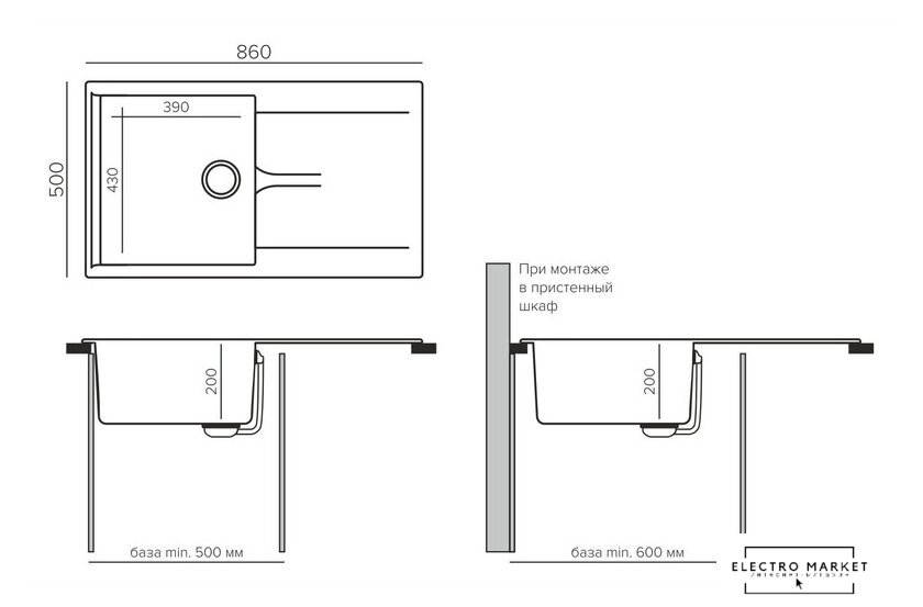 | Способ установки | врезная на столешницу |