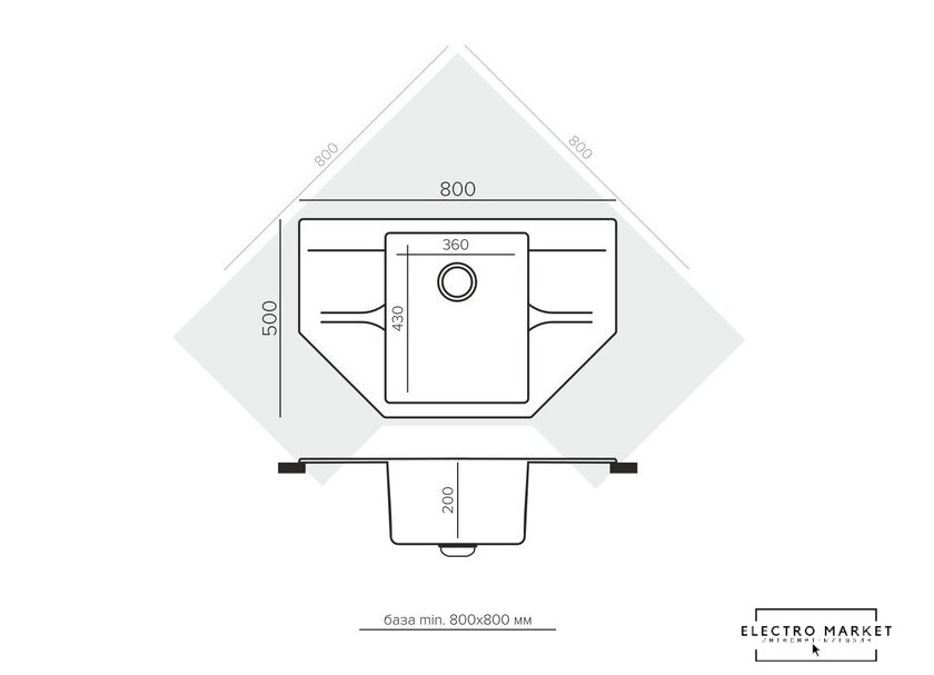 врезная на столешницу, искусственный камень, размеры: 80x50 см, глубина чаши: 20 см, в шкаф шириной от 80 см
