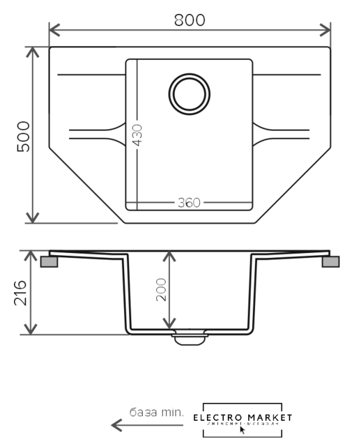 врезная на столешницу, искусственный камень, размеры: 80x50 см, глубина чаши: 20 см, в шкаф шириной от 80 см