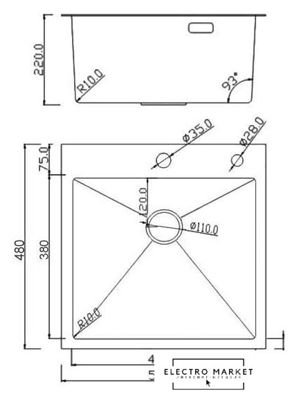 Длина мойки | 48 см |