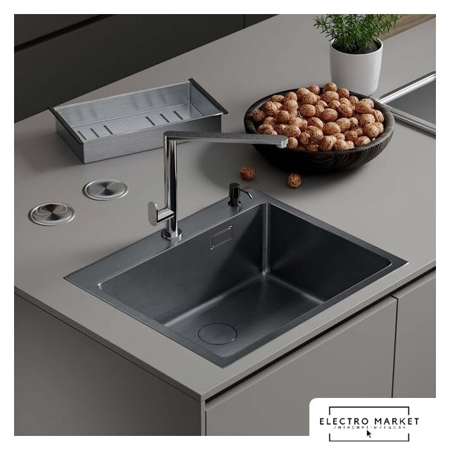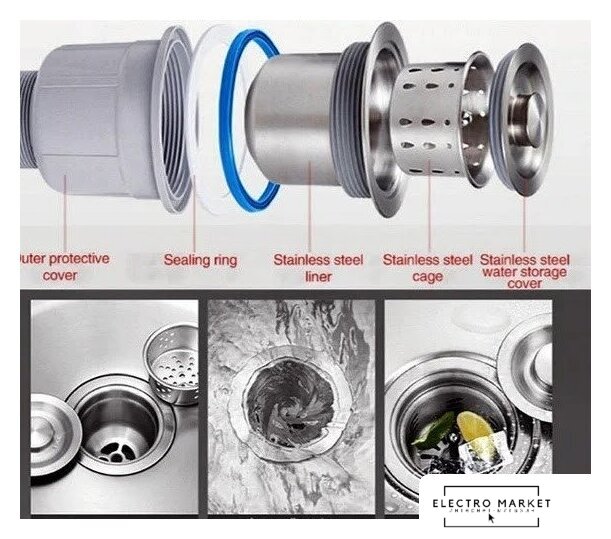 Комплектация | сифон с гофрой, коландер из нержавеющей стали, дозатор для моющих средств, корзинчатый вентиль, декоративная накладка, 2 заглушки на отверстия, комплект креплений к столешнице |