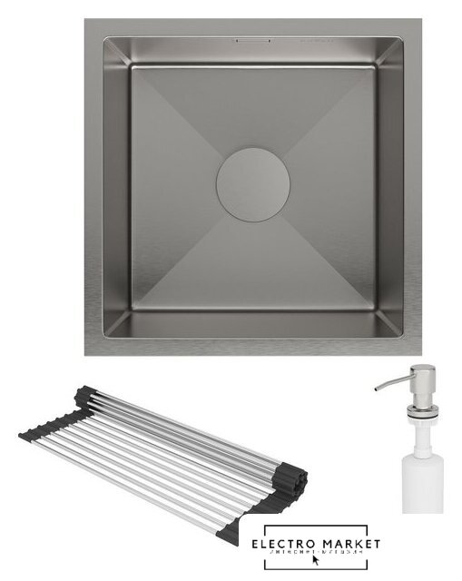 | Комплектация | ✅стальная мойка✅сифон✅корзинчатый вентиль✅декоративная накладка✅дозатор для моющих средств✅ролл-мат✅комплект креплений |