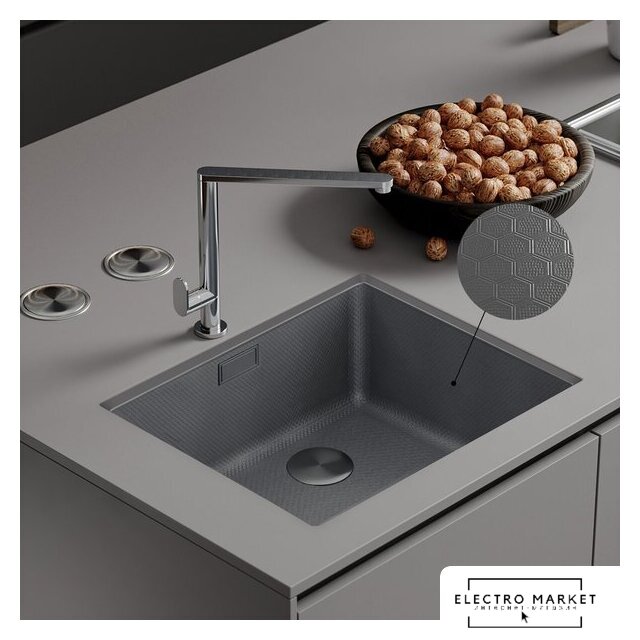 врезная на столешницу, нержавеющая сталь, фактура: сатин, размеры: 50x65 см, глубина чаши: 22 см