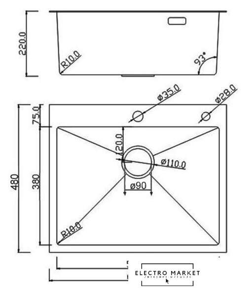 | Длина мойки | 48 см |