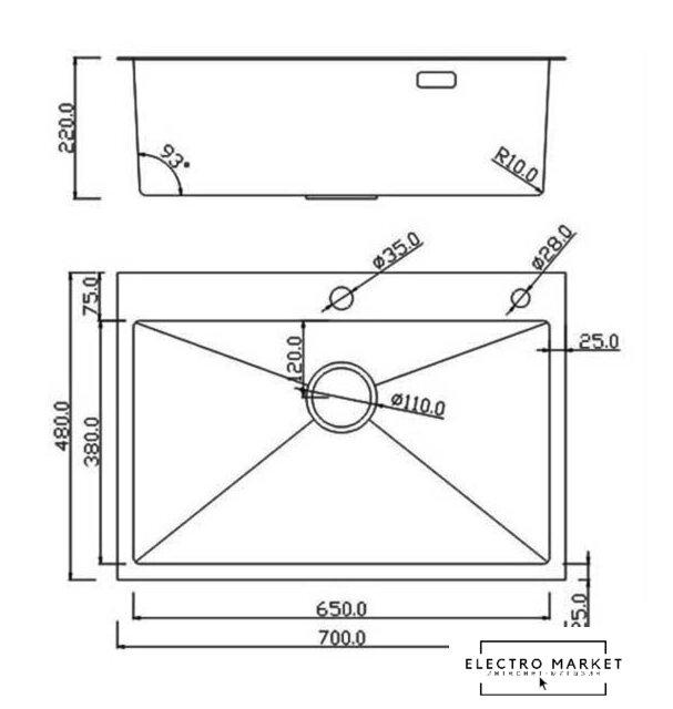 врезная на столешницу, нержавеющая сталь, фактура: матовая, размеры: 50x48 см, глубина чаши: 22 см