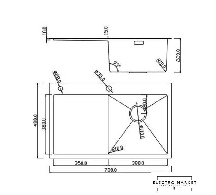 врезная на столешницу, нержавеющая сталь, фактура: сатин, размеры: 78x48 см, глубина чаши: 22 см