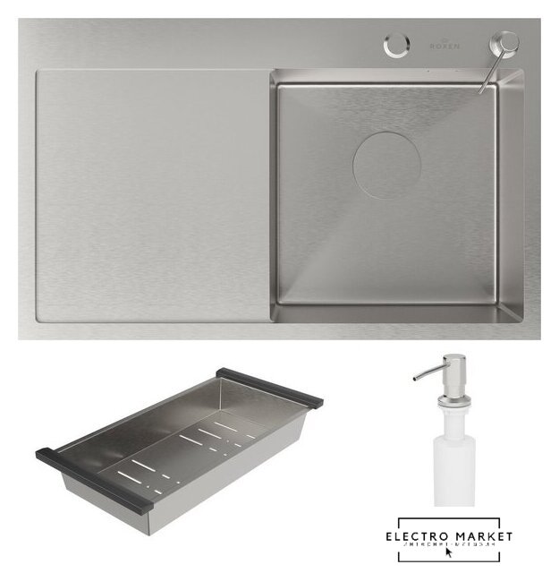 Комплектация | сифон с гофрой, коландер из нержавеющей стали, дозатор для моющих средств, корзинчатый вентиль, 2 заглушки на отверстия, комплект креплений к столешнице |