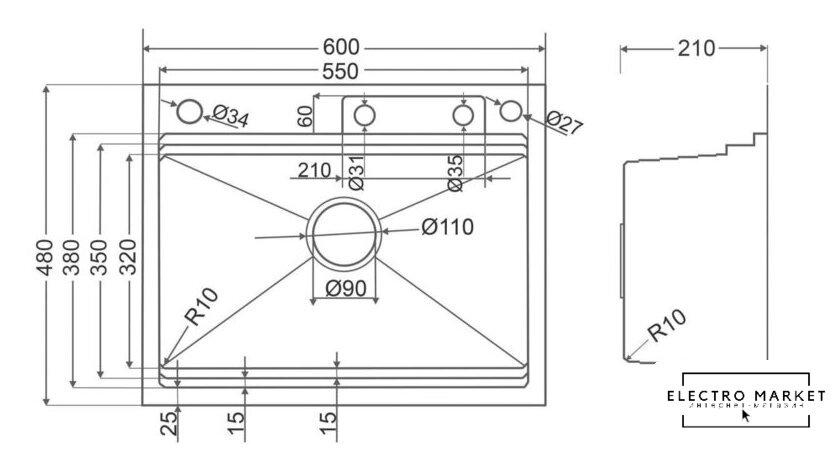 | Длина мойки | 48 см |
