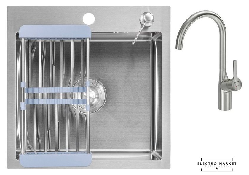 | Комплектация | Мойка кухонная Saniteco 4848 (с сифоном, дозатором и коландером); Смеситель AM.PM Spike F9S07011 (сатин) |