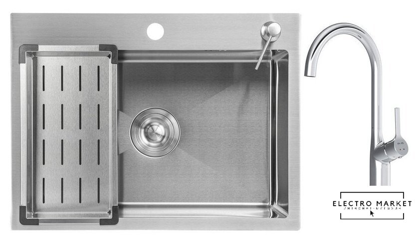 | Комплектация | Мойка кухонная Saniteco 6045 (с сифоном, дозатором и коландером), Смеситель AM.PM Spike F9S07000 (хром) |