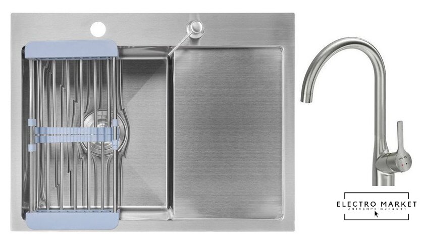 | Комплектация | Мойка кухонная Saniteco 6550-L (с сифоном, дозатором и коландером); Смеситель AM.PM Spike F9S07011 (сатин) |
