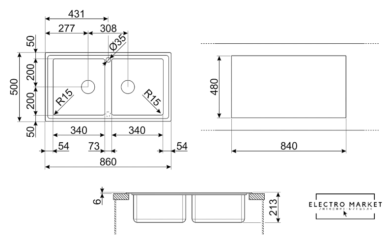 врезная на столешницу/врезная под столешницу, искусственный камень, размеры: 55.5x46 см, глубина чаши: 20 см, в шкаф шириной от 60 см