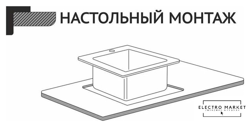 врезная на столешницу, искусственный камень, размеры: 44x49 см, глубина чаши: 18 см, в шкаф шириной от 45 см