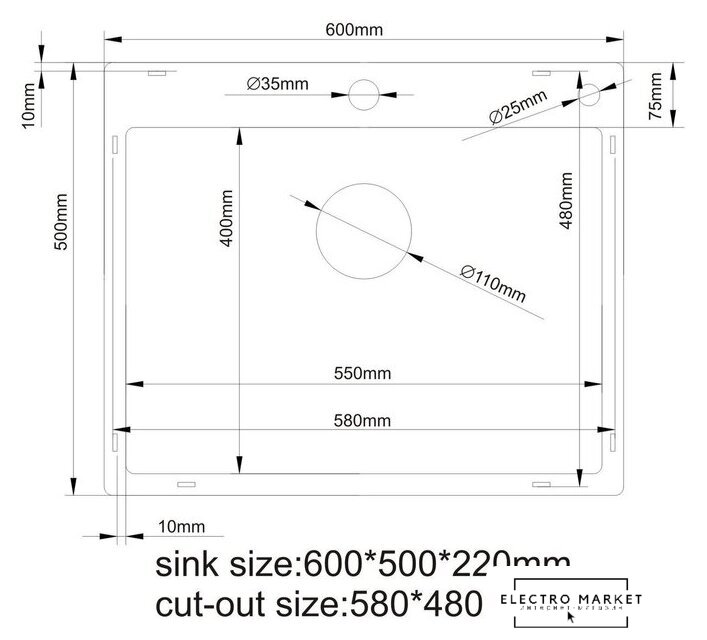 | Способ установки | врезная на столешницу, врезная под столешницу, врезная вровень со столешницей |