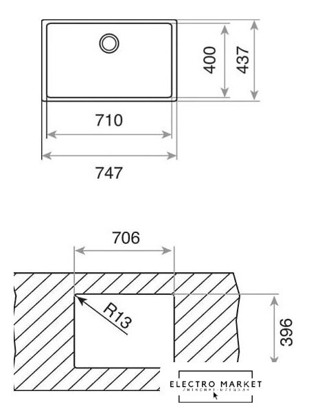 врезная на столешницу/врезная под столешницу, нержавеющая сталь, фактура: матовая, размеры: 49x44 см, глубина чаши: 18 см, в шкаф шириной от 60 см