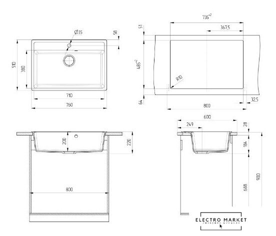 | Ширина мойки | 51 см |