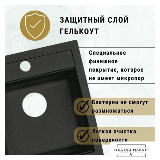 врезная на столешницу, искусственный камень, размеры: 46.5x50.5 см, в шкаф 50 см