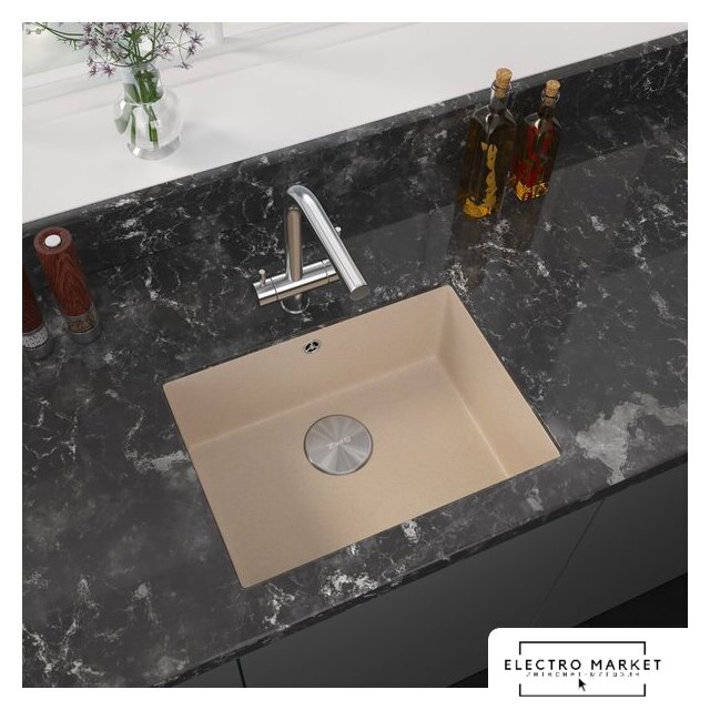 врезная на столешницу, искусственный камень, фактура: матовая, размеры: 65x51 см, глубина чаши: 20 см, в шкаф шириной от 50 см