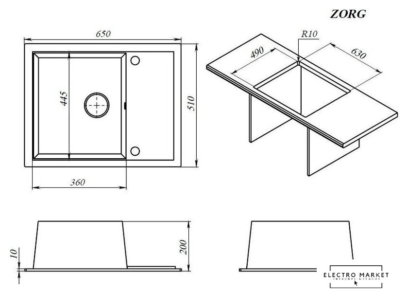 врезная на столешницу, искусственный камень, фактура: матовая, размеры: 60x51 см, глубина чаши: 20 см, в шкаф шириной от 60 см