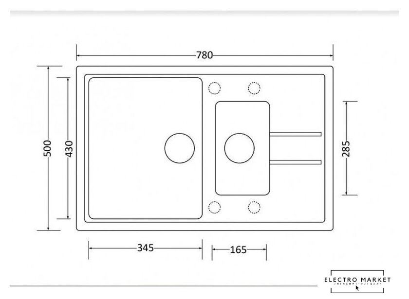 врезная на столешницу, искусственный камень, размеры: 77.5x50.6 см, глубина чаши: 20 см, в шкаф шириной от 80 см