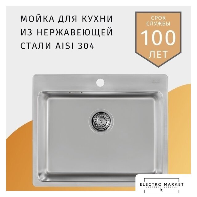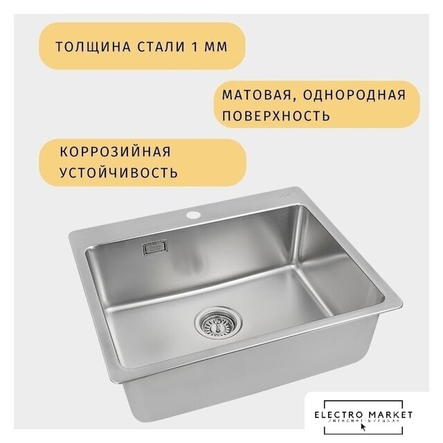 врезная на столешницу, нержавеющая сталь, фактура: матовая, размеры: 60x50 см, глубина чаши: 20 см