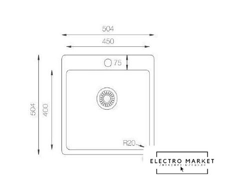 врезная на столешницу, нержавеющая сталь, фактура: матовая, размеры: 50.5x55 см, глубина чаши: 20 см