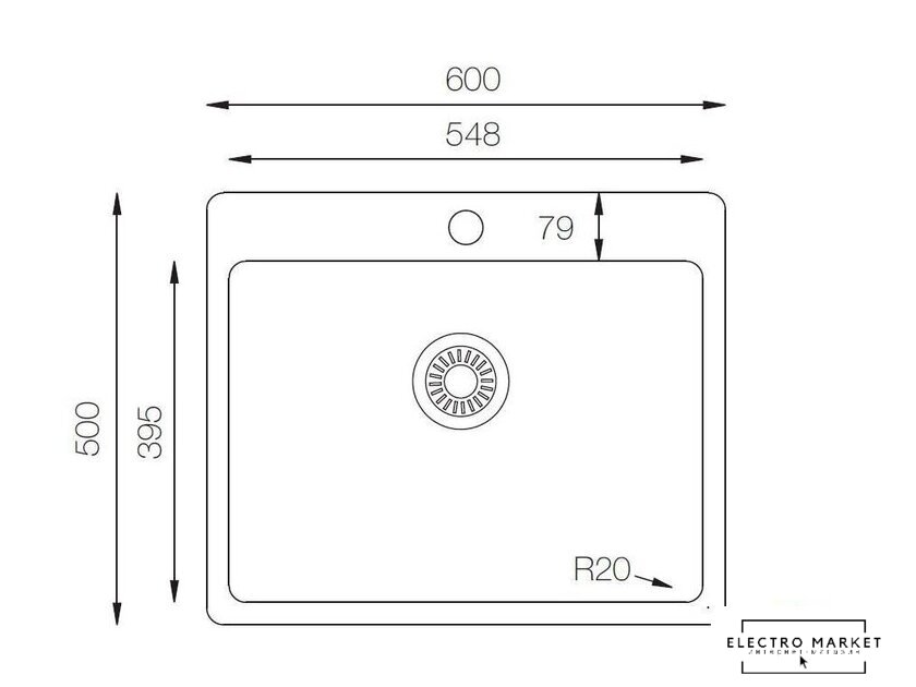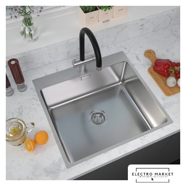врезная на столешницу, нержавеющая сталь, фактура: сатин, размеры: 55x51 см, глубина чаши: 20 см, в шкаф шириной от 60 см