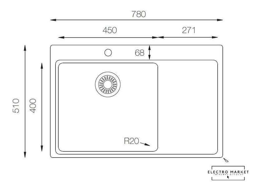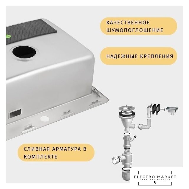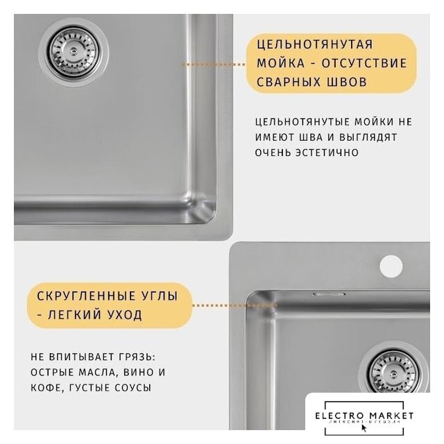 врезная на столешницу, нержавеющая сталь, фактура: матовая, размеры: 50x50 см, глубина чаши: 20.5 см, в шкаф шириной от 60 см