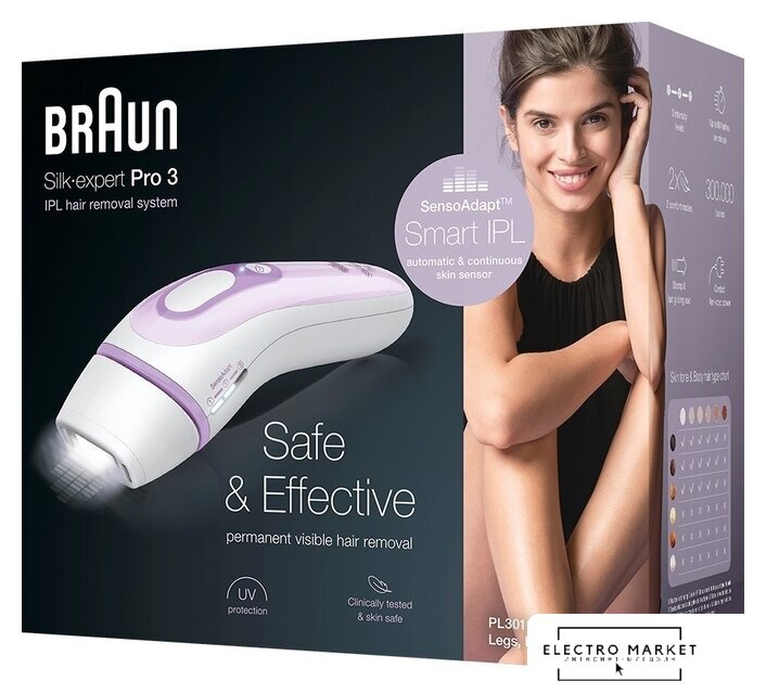 фотоэпилятор, ресурс лампы 300000 вспышек, количество режимов: 3, питание от сети