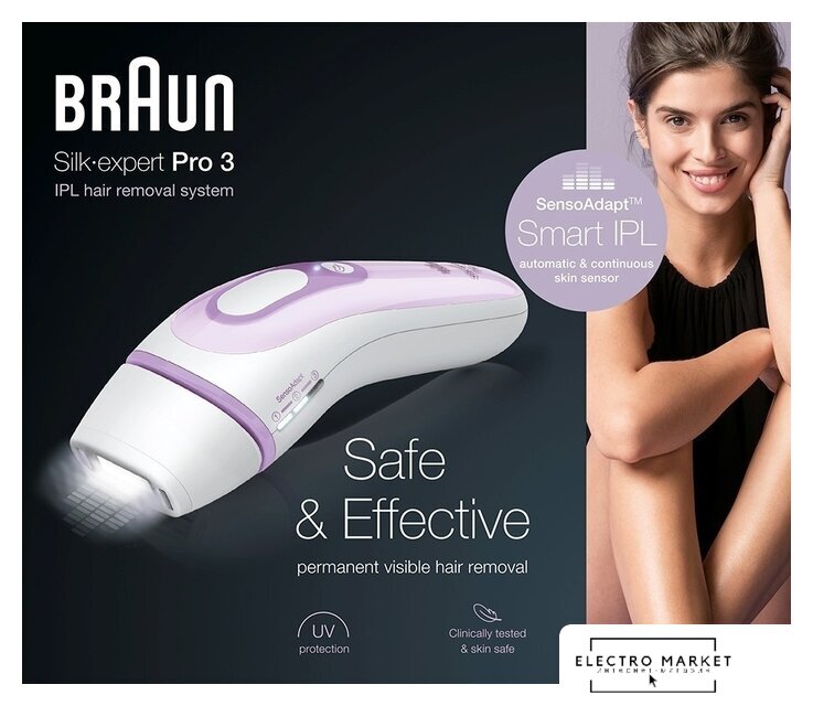 фотоэпилятор, ресурс лампы 400000 вспышек, количество режимов: 3, питание от сети
