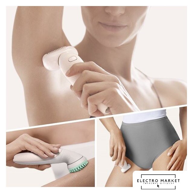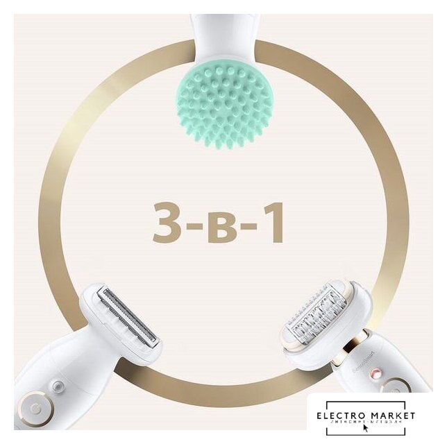 эпилятор, количество режимов: 3, насадка для бритья, триммер, подсветка, питание от аккумулятора/батареек