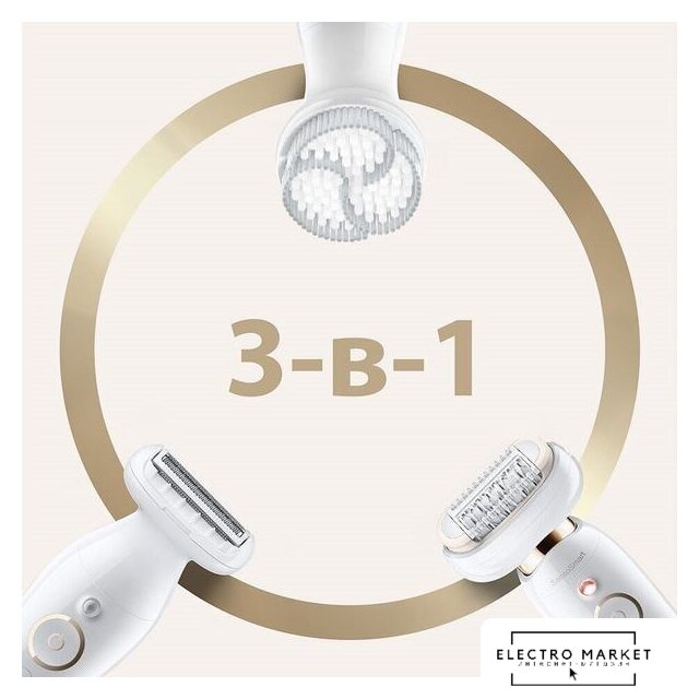 эпилятор, количество режимов: 3, массажер, насадка для бритья, подсветка, питание от аккумулятора/батареек