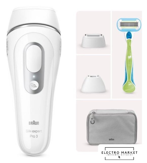 Комплект поставки | 1x Braun Silk-Expert Pro 3 PL3122 со стандартной насадкой1x бритва Venus Smooth1x сумка для хранения2x точные насадки1x широкая насадка |