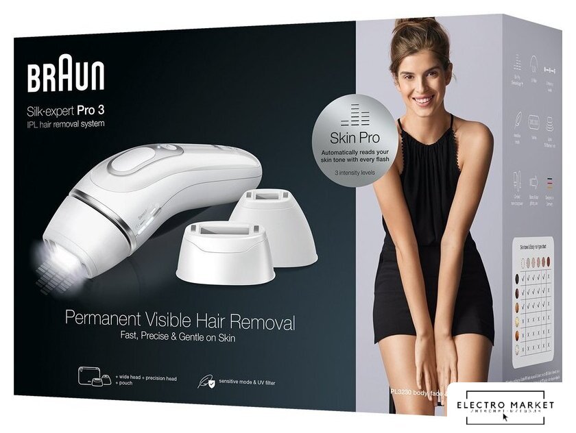 фотоэпилятор, ресурс лампы 400000 вспышек, количество режимов: 3, питание от сети
