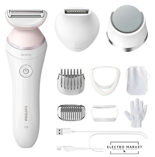 Комплект поставки | Чистящая щеткаГребень для стрижкиМягкое скользящее креплениеНасадка для подтяжки кожиОтшелушивающая перчаткаГоловка для стрижки бикиниНасадка-триммер для бикиниПедикюрная пилка |