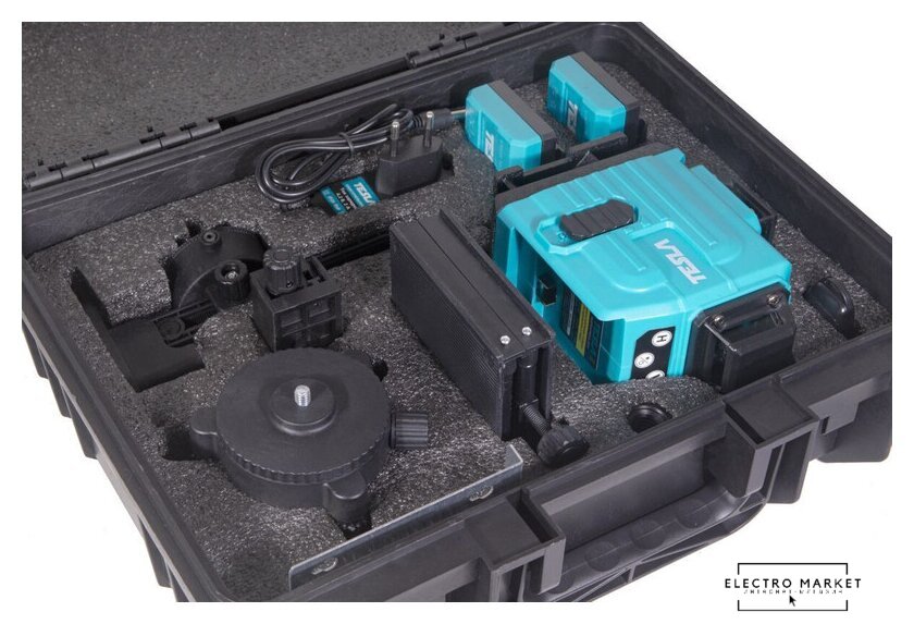 Комплект поставки | Лазерный нивелир - 1 шт.Аккумулятор - 2 шт.Зарядное устройство - 1 шт.Набор аксессуаров - 1 шт.ИнструкцияКейс |