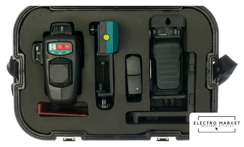 | Комплект поставки | - Лазерный нивелир;- Держатель;- Детектор с держателем;- Блок питания;- Мишень;- Кейс. |